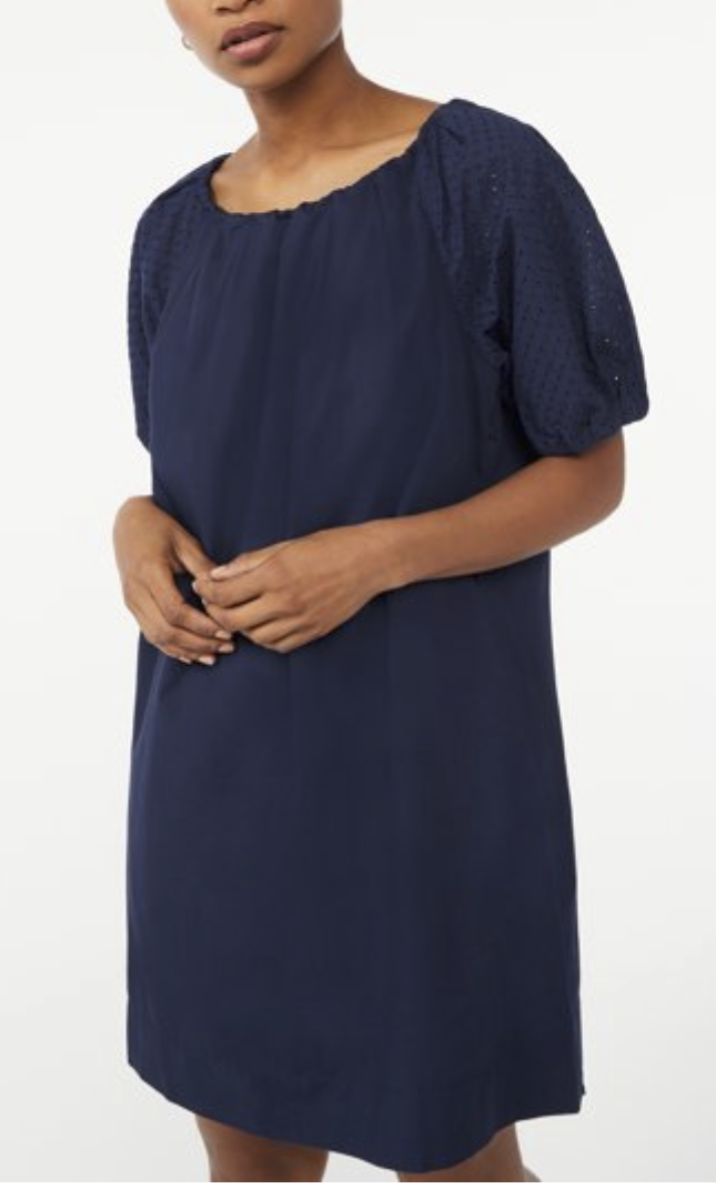 Free Assembly Women's Pleated Blouson Dress with Short Sleeves