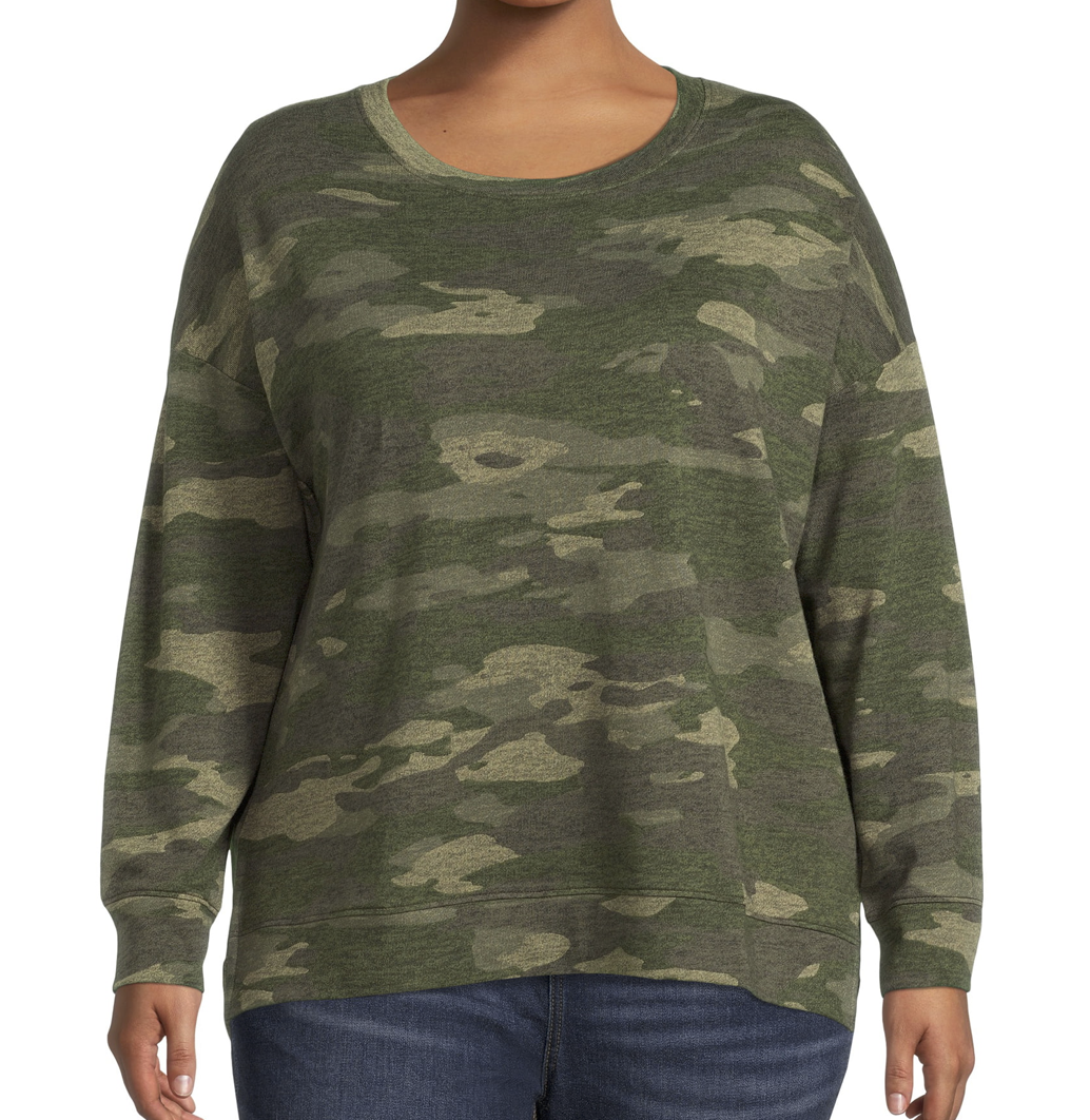 Terra & Sky Women's Plus Size Tie Dye Shorts and Sweatshirt Set, 2-Piece