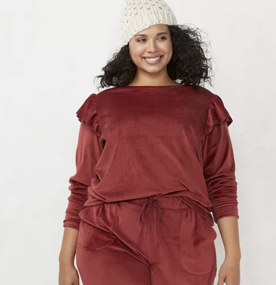 Plus Size LC Lauren Conrad Ruffle Shoulder Sweatshirt