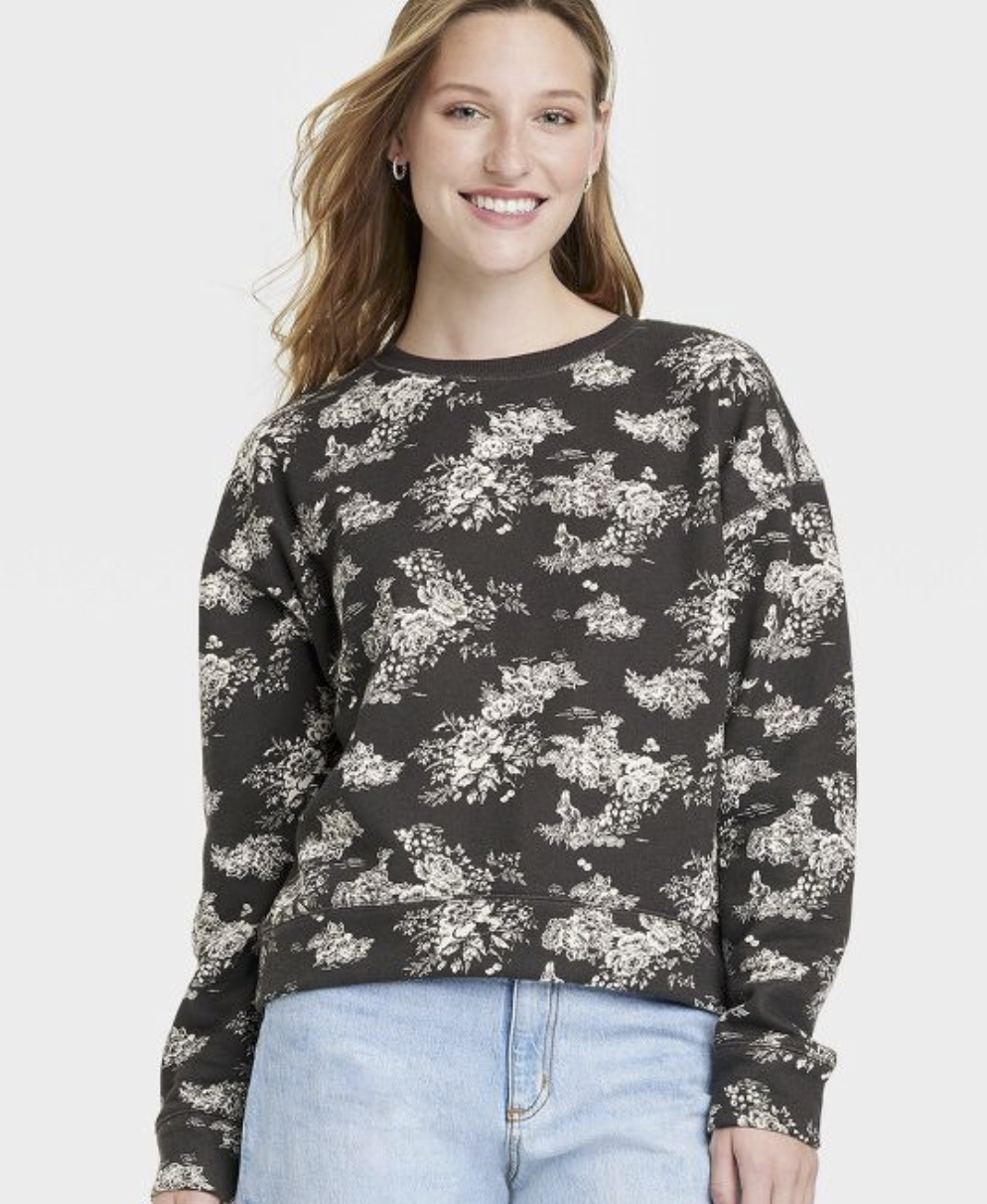 Women's Toile Print Fleece Sweatshirt - Universal Thread™ Dark Gray Floral