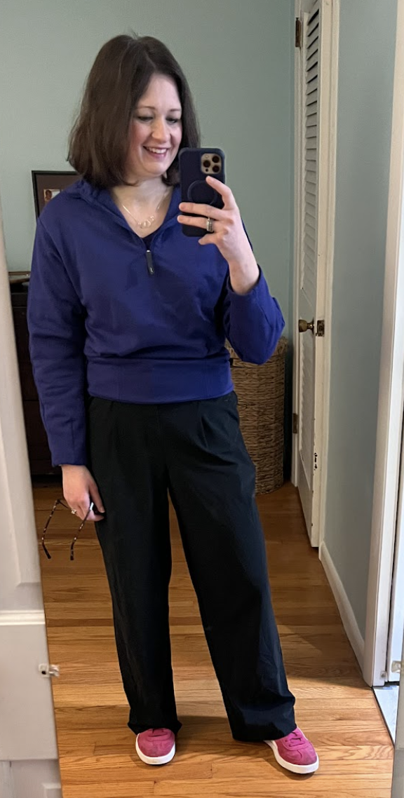 Fridays are pretty casual at my office, so this is a go to outfit formula for me. I love this sweatshirt…I love it even more when I have a crispy Diet Coke to sip on while wearing it!