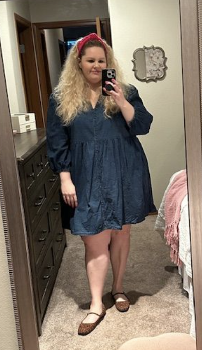 I have had this dress for years and still love it! It was finally a little bit warm, so I broke out some of my dresses (I am a dress girly!) I find a dress like this easy to style; I’ve worn it with sandals, flats, cowboy boots, riding boots & tights. This outfit shows my preppy side with the puff shoulders, pop of color headband and leopard flats. I always feel like myself when I wear this dress!