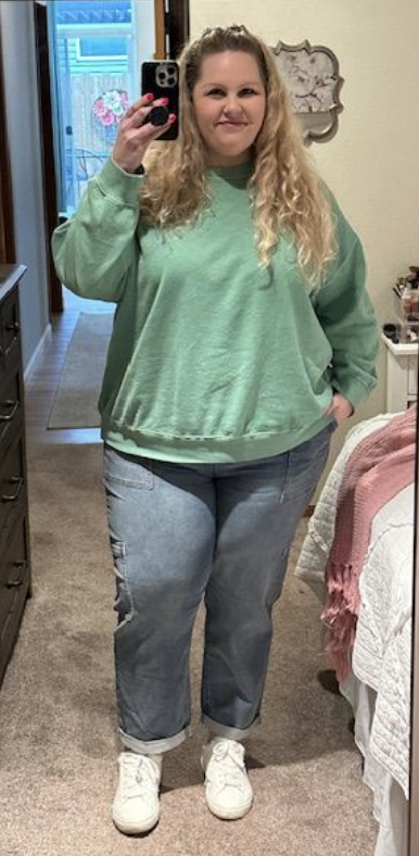 This outfit is a bit more sporty than I normally dress, but I like to flirt with sporty style. These pants are sooo comfy and lightweight! They will be great for summer. I love these Old Navy sweatshirts that I just got this green and a bright pink. It stays pretty mild where I live into the summer, so these colors will be great to wear for spring & summer. I might even look to find a cute iron-on patch to put on this sweatshirt to make it a little more preppy.
