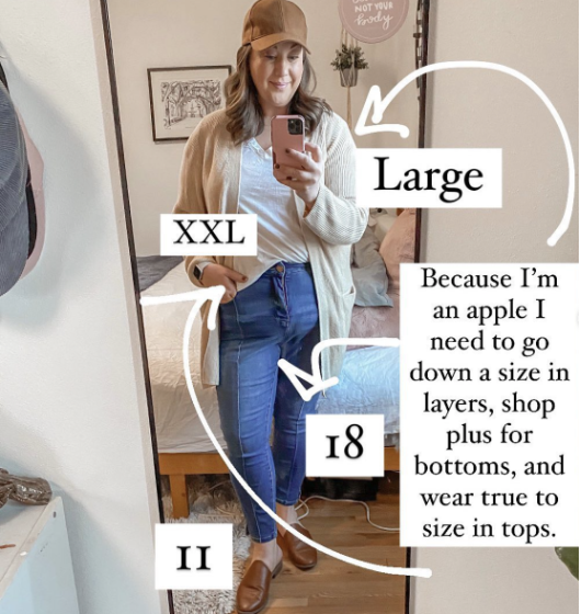 I am an apple, and because of that I know that layers are almost always going to run big and bottoms I need in plus size.