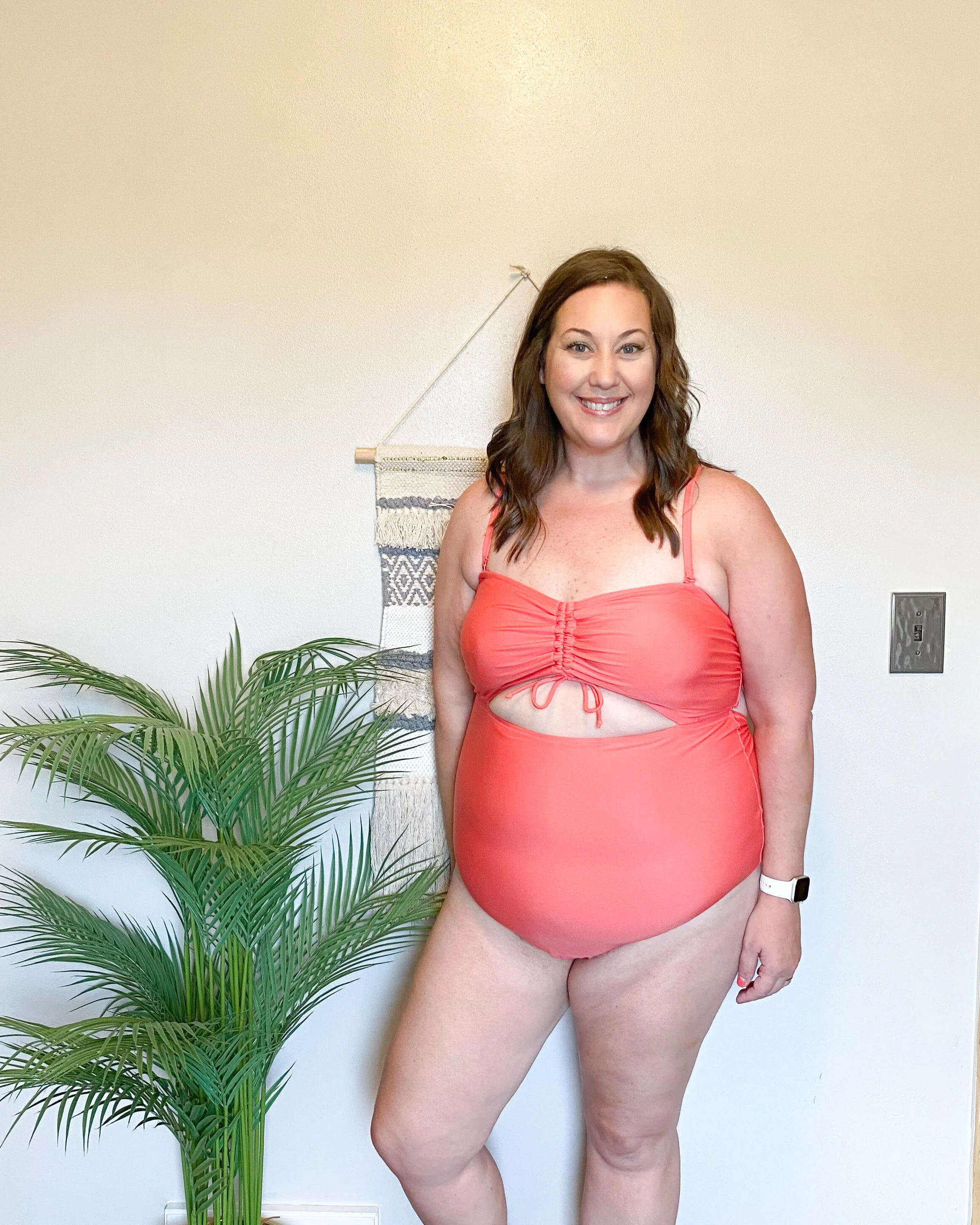 Another thing a tall size would help with is the cut of the leg. These one piece swimsuits have a higher cut in the leg than others I’ve tried, and less coverage on the back side. A tall would help with more coverage there too, and this is specific to my apple shape I’m dressing.