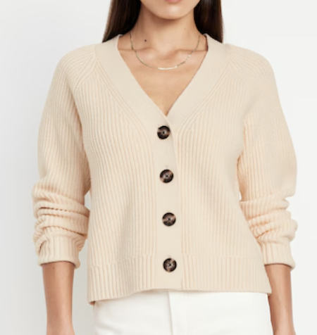 Outfit Building Blocks: cardigan + basic knit + causal pant + casual shoe